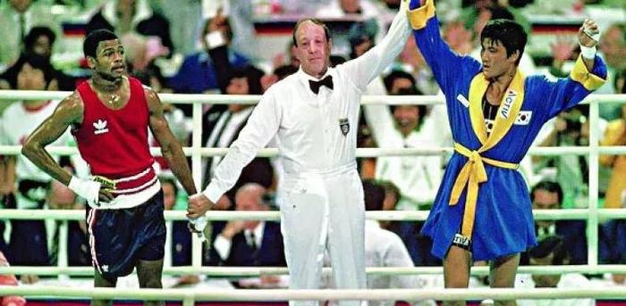 1988年汉城奥运会,男子拳击轻中量级决赛,当时还不到20岁的美国选手小罗伊-琼斯对阵东道主选手朴时宪。尽管场面上小罗伊-琼斯占据绝对优势,三回合赛事里打中对手86拳,而朴只给出32次命中成绩,但最终裁判还是判决朴时宪获胜夺冠。